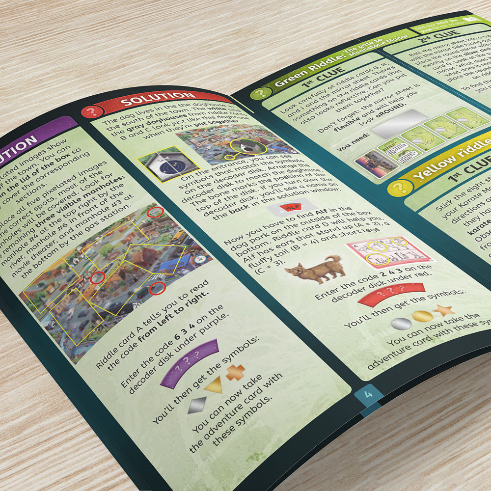 Gather your family for two fun, cooperative escape room games featuring five brave superhero animals. Think outside the box as you work together to solve riddles, decipher puzzles, uncover clues, and unlock doors. In the first adventure, work together to solve the mystery of the missing animals at Meanstone Manor! Then take your puzzle-solving powers to Candy Castle to uncover the secret behind sickening sweets. Each escape adventure takes approximately 45-75 minutes to solve, and can only be played once. For 2-4 players.