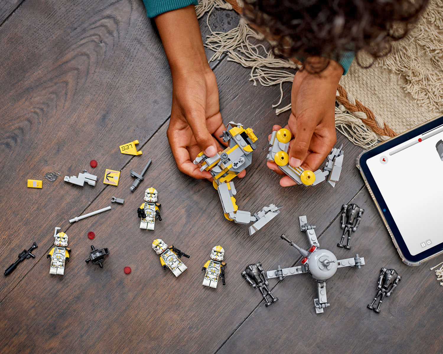 Introduce kids to the action-packed LEGO Star War universe and encourage them to become heroes in their own epic stories! This 258-piece set is easy and quick to build so kids can play right away. They'll explore a galaxy far, far away as the platoon of 327th Star Corps Clone Troopers take on the Super Battle Droids. Imaginations take flight as kiddos operate the AT-RT walker and stud shooters.