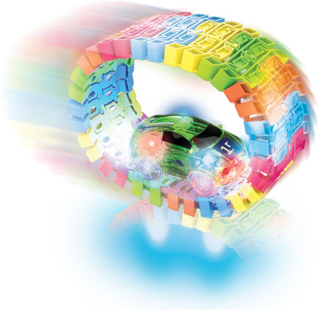 Ready to race? Let's glow! An impressive gift for vehicle-obsessed kiddos, this race car set has over 11' of flexible glow-in-the-dark track. We love that the track sections connect easily into endless layouts for frustration-free building. Kiddos light up with joy as they send the blacklight vehicle cruising around the track, awestruck by the glowing trail it leaves behind. Requires 2 AAA batteries, not included.