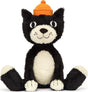 The iconic Jellycat is here in soft black fur with cream tummy and paws. With a long tail and pointy ears, this cat has a bright orange velveteen jelly on his head!