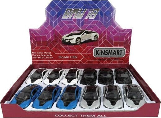 12 per box Zoom into action with this sporty BMW diecast car Pull back and watch 'em go Made of metal and plastic Item 5" L. No package Display with assorted colors Age 3+