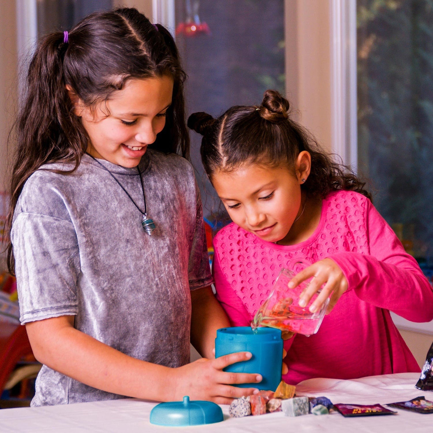 Transform rough rocks into gorgeous polished gems! A great STEM gift for future geologists and earth scientists, this kit has everything kids need to turn ordinary rocks into polished gemstones. Don't worry, parents! The durable motor and sturdy base are built to last, while the upgraded barrel is designed to be extra-quiet and leak-proof. A built-in timer and automatic shut-off make it safe and hassle-free. Simply plug into any standard wall outlet with the included AC adapter for consistent, reliable tumbling. And when the gems are ready, jewelry fastenings let kids turn their favorite finished stones into one-of-a-kind keepsakes. Kit includes: 1 high-quality Tumbling Machine; 1 upgraded leak-proof Tumbling Barrel; 1 bag of Rough Gemstones (0.55 pounds); 4 bags of Polishing Grits (0.7 ounces each); 1 Rock Strainer; 5 Jewelry Settings; Instructions and Learning Guide, which teaches about natural rock polishing processes and more.