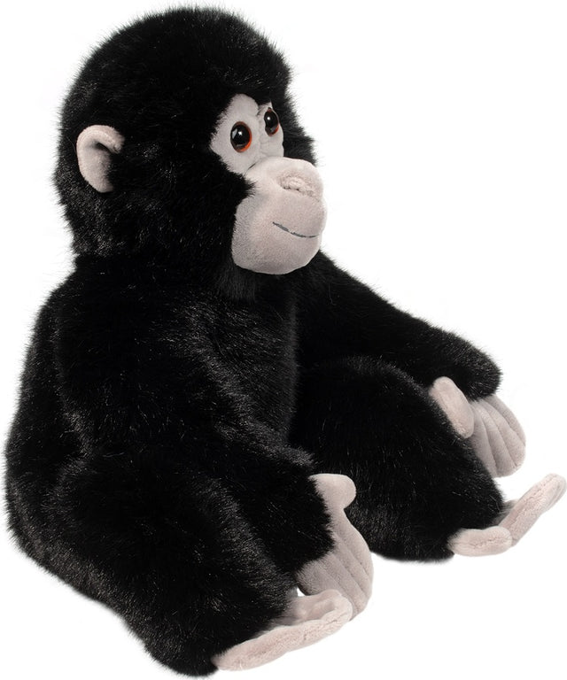 With Reggie, Douglas Toys' Soft Gorilla stuffed animal, this great ape from the jungles of Africa has never been cuddlier! His jet black plush materials feature a glossy shine and are contrasted by the pale color of his detailed face, hands, and feet. Warm, amber colored eyes stare out from Reggie's face, while wrinkles, nostrils, and an upturned smile complete his engaging expression.
